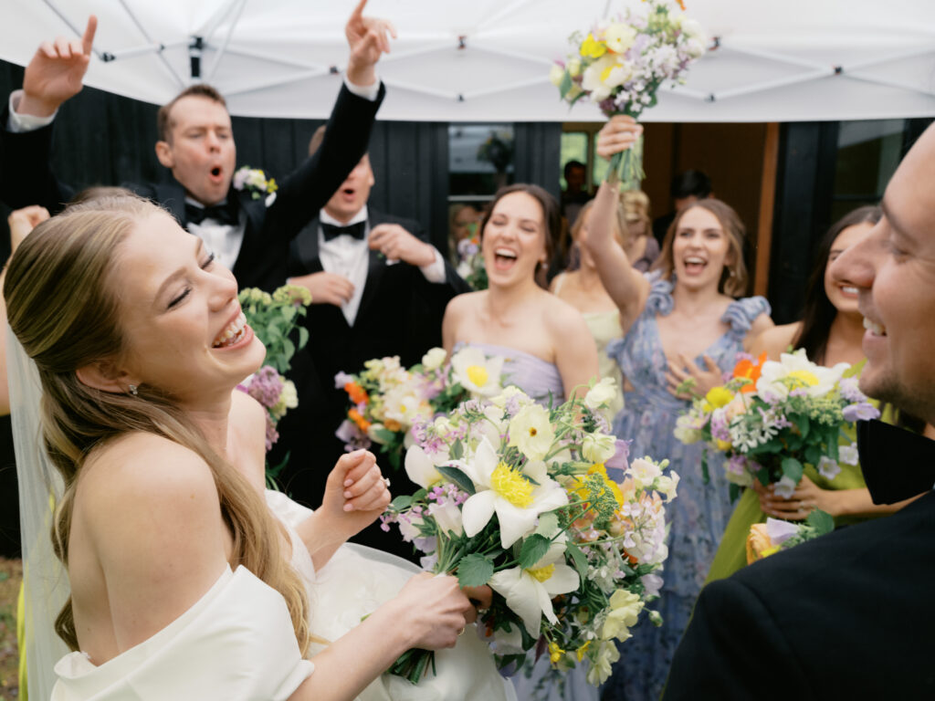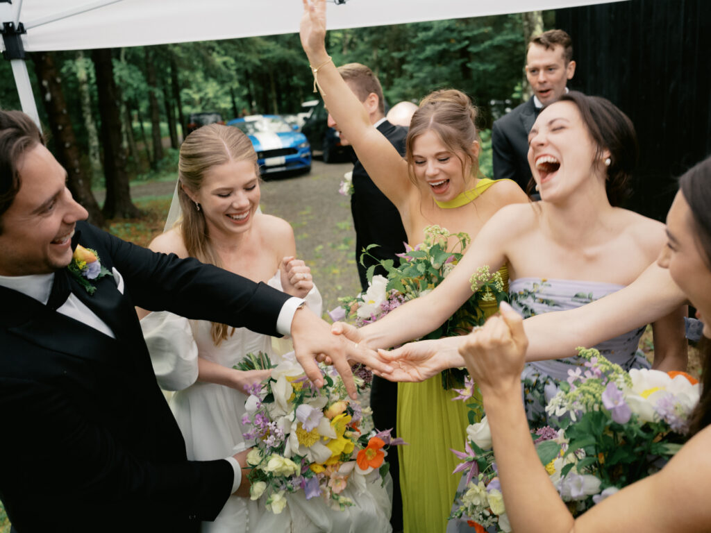 This Catskills wedding in the Hudson Valley was one of those days where the rain and unexpected chill could have shifted the tone, but instead it made everything feel more alive, more relaxed, and more fun from the very start.